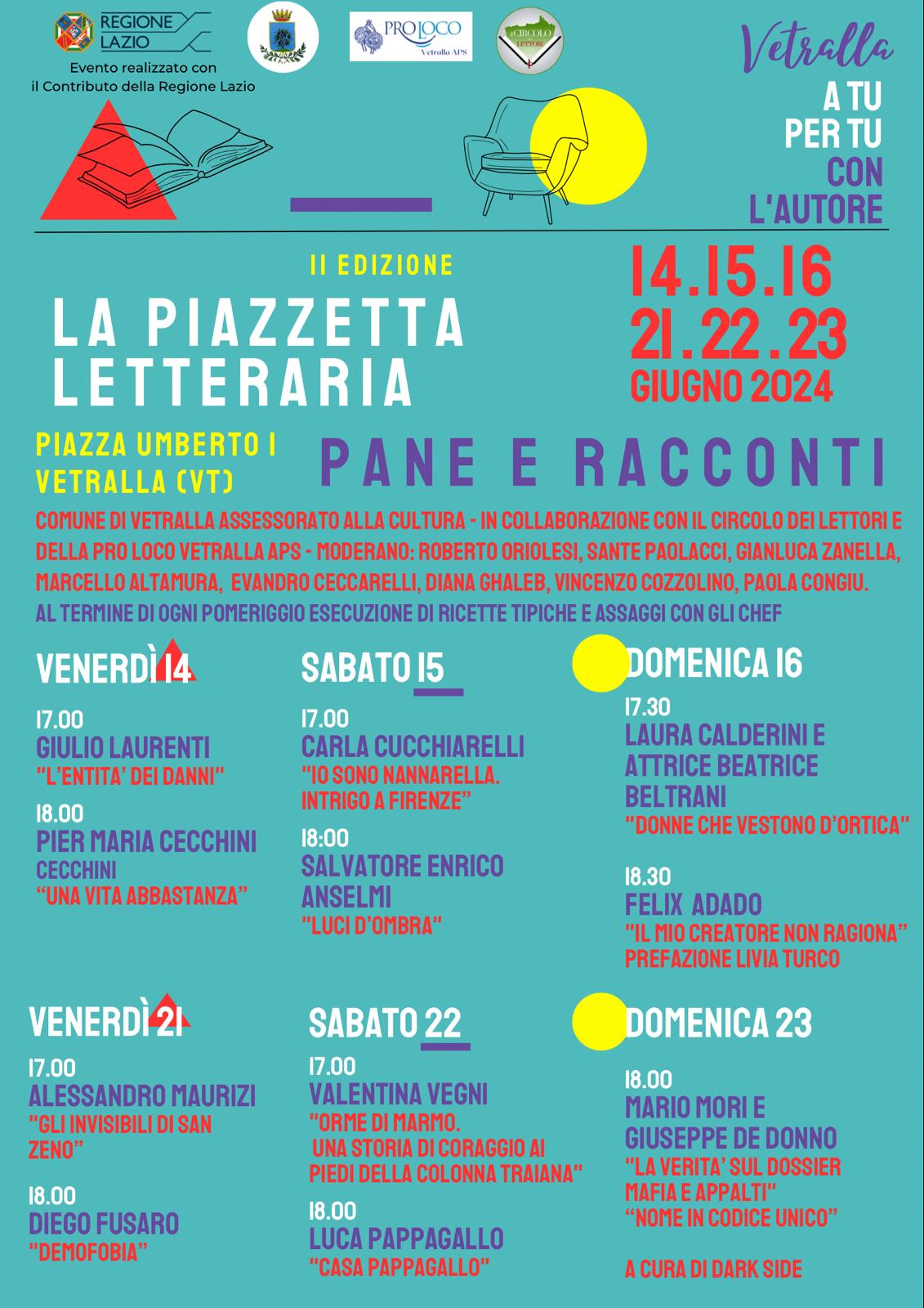 giu 14 2024 "Pane e Racconti" al via la II^ edizione della Piazzetta Letteraria da venerdì 14 giugno 2024 - a domenica 23 giugno 2024