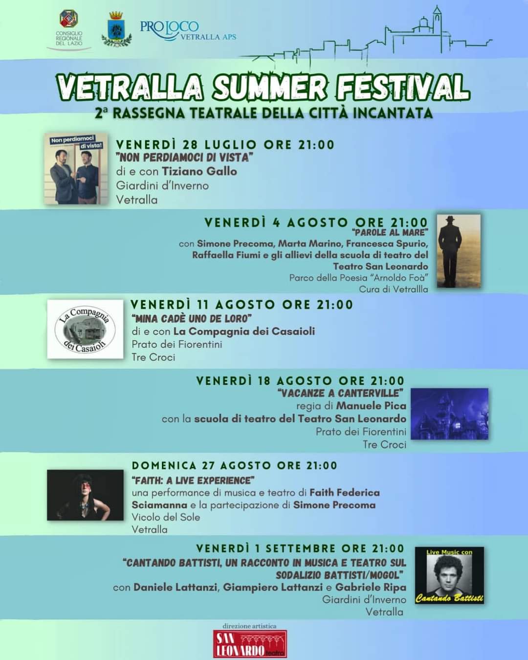 "Vetralla Summer Festival – 2° rassegna teatrale della Città Incantata” è un progetto volto alla prosecuzione di eventi che contribuiscono alla promozione della cultura ed in particolare degli spettacoli dal vivo, dando così continuità ad iniziative già avviate e collaudate.